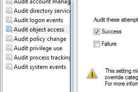 ![]() Na desni sedaj dvokliknemo možnost Audit object access. |