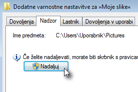 ![]() Sedaj odpremo zavihek Nadzor ter kliknemo na gumb Nadaljuj.