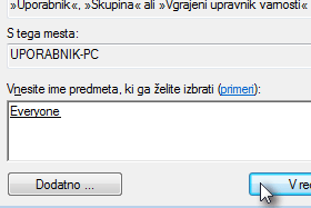 ![]() Vpišemo uporabniško ime, za katerega želimo preverjati, ali dostopa do naše datoteke. |