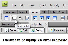 Obrazec za pošiljanje pošte v PHP bom izdelali v programu Dreamweaver.