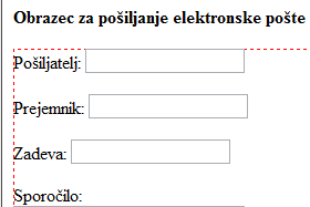 ![]() Obrazec za pošiljanje pošte v PHP bom izdelali v programu Dreamweaver.