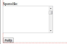 ![]() Ker želimo, da bo vnosno polje za sporočilo nekoliko večje, na obrazec dodamo še polje tipa Textarea. |
