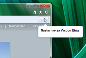 Z Internet Explorerjem pojdite na naslednjo povezavo: http://toolbar.discoverbing.com/toolbar/sl-si.html in namestite (potrebovali boste skrbniško dovoljenje) Vrstico Bing.