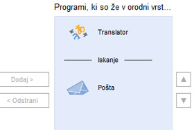 Pod Programi si lahko nastavite katere funkcije vrstice želite na njej imeti ter jih poljubno razporedite.