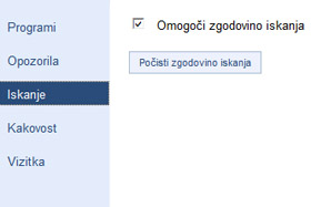 Pri Iskanju obkljukajte edino možnost, če želite, da vrstica beleži zgodovino iskanja.