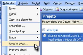 Kliknite na Datoteka in izberite Uvoz in izvoz ...
