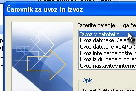 Sedaj vas Outlook vpraša, kaj želite izvoziti.