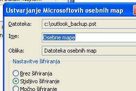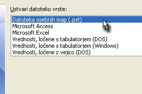Za vrsto datoteke izberite Datoteka osebnih map (.pst) in kliknite na gumb Naprej.