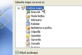 Izberite najvišjo mapo Osebne mape in spodaj označite Vključi podmape. Še klik na gumb Naprej. |
