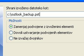 Pri možnostih pustite označeno Zamenjaj podvojene z izvoženimi elementi. Potrdite še na gumb Dokončaj. |