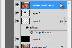 Pritisnite tipki Ctrl + J,. da ga duplicirate in nato dupliciran layer premaknite na vrh palete layerjev (glej sliko).