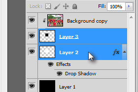 Sedaj pa držite tipko Ctrl in označite spodnja dva layerja (glej sliko). |