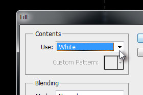 V novem oknu Use preko izbirnika določite White in potrdite s klikom na gumb OK. S tem ukazom smo selekcijo zapolnili z belo barvo. |