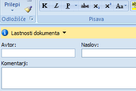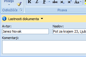 ![]() Če gremo sedaj še enkrat preveriti v Lastnosti dokumenta, bomo videli, da so polja sedaj prazna. |
