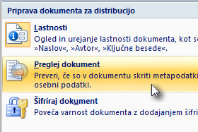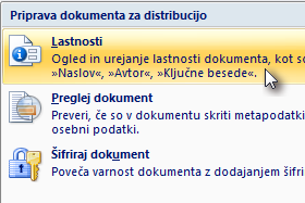 ![]() Obstaja pa tudi boljši način in sicer, da namesto Lastnosti izberemo možnost Preglej dokument. |