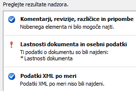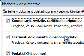 ![]() Word bo sedaj preveril, katere dodatne stvari se bodo shranile v dokument. |