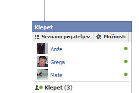 Ko boste prijavljeni, boste opazili spodaj desno majhno okno, kjer piše Klepet, in poleg število (ki predstavlja število prijavljenih prijateljev).