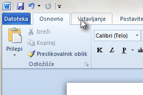 Odprite Microsoft Office Word 2010 in kliknite na zavihek Vstavljanje.