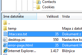 ErrorDocument 404 /error-page.html Sedaj datoteko shranite pod imenom .htaccess.txt |