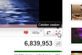 Kliknite na ikono v spodnjem desnem kotu, da boste povečali video čez cel zaslon (glej sliko).