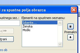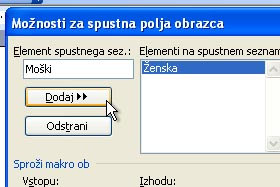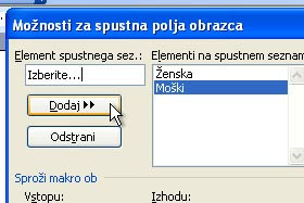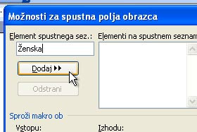 V element spustnega seznama vpišite prvo Ženska in kliknite na gumb Dodaj. |