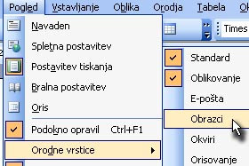 Kliknite na Pogled, Orodne vrstice in označite Obrazci.
