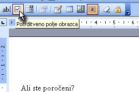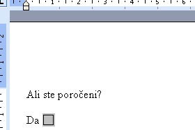 Vpišite za tem kvadratkom še besedo Ne in potem še enkrat kliknite na ikono Potrditveno polje obrazca.