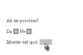 Pod tem vprašanjem sedaj vpišite Izberite vaš spol:.