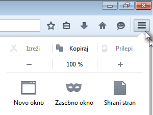 V brskalniku Firefox zgoraj desno kliknemo na gumb Možnosti.