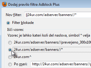 ![]() Odpre so okno z nastavitvami filtra za blokiranje reklam. |