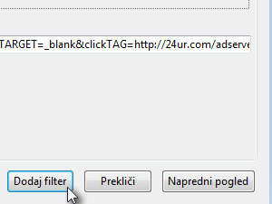 ![]() Sedaj kliknemo gumb Dodaj filter, da ga dodamo v našo zbirko filtrov. |