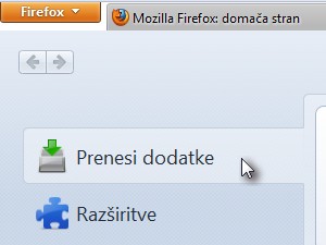 ![]() V meniju izberemo možnost Prenesi dodatke.