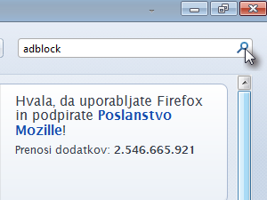 Za blokiranje reklam bomo namestili razširitev AdBlock Plus.