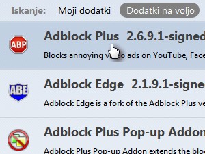 ![]() Za blokiranje reklam bomo namestili razširitev AdBlock Plus.