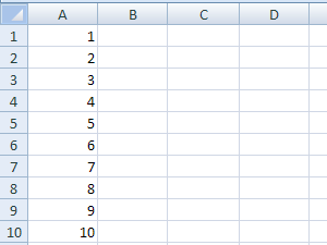 Odprimo Excel. Od Excela želimo, da nam v celico A1 izpiše prvih 10 večkratnikov števila 7.