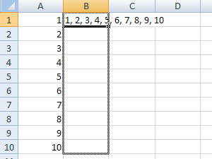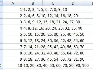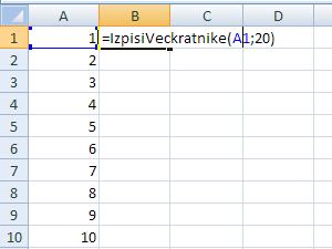 ![]() Sedaj v celico, levo od števila 1, vnesite formulo =IzpisiVeckratnike(A1;10) |