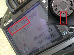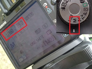 ![]() Sedaj fotoaparat preklopite na povsem ročni način M. Tukaj sedaj nastavite take vrednosti (hitrost zaklopa in odprtost zaslonke), kot ste jih dobili s polovičnim pritiskom sprožilca (ostrenjem) oz. testnim posnetkom. To je bilo potrebno storiti zato, da kasneje ko boste pogledali fotografije na računalniku, bodo vse enako svetle oz. temne ter imele enako globinsko ostrino.