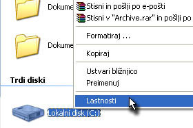 Kliknite na ta disk z desnim miškinim gumbom in izberite Lastnosti.