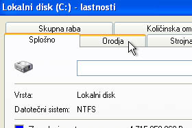 Odpre se vam okno z lastnostmi za lokalni disk C:.