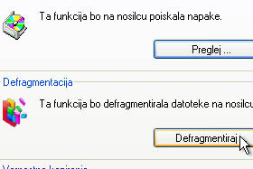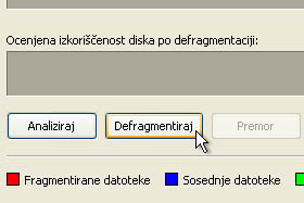 Spodaj pa kliknite na gumb Defragmentiraj.