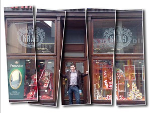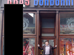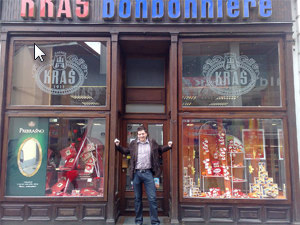 Jaz sem odprl fotografijo, kjer poziram pred Kraš trgovino v Ljubljani, saj so mi zaradi male pohvale osebno poslali res velik paket dobrot na dom.