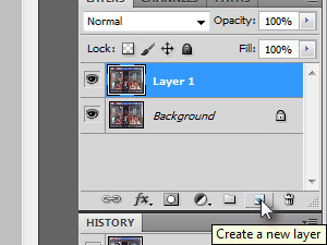 ![]() Pritisnite tipki Ctrl + J, da duplicirate fotografijo v nov layer. |