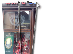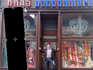 ![]() Ko boste vertikalno obliko ustvarili, pritisnite tipki Ctrl + T, da jo v načinu transformacije obrnete okoli svoje osi in premaknete na poljubno lokacijo na fotografiji. |