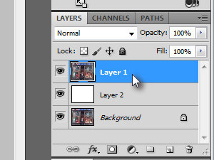 ![]() Označite nazaj dupliciran layer z fotografijo (glej sliko). |