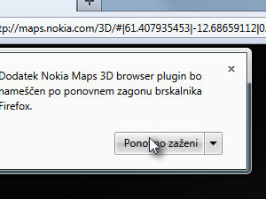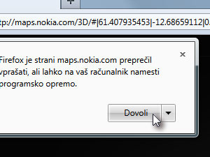 Ker želi Nokia zemljevide še naprej zaganjati znotraj brskalnika, je potrebna namestitev dodatka.
