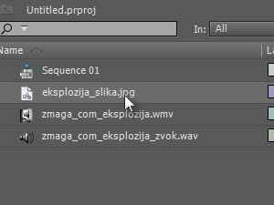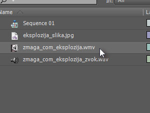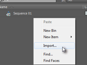 V polju Sequence 01 kliknite z desnim miškinim gumbom na sivo polje in izberite Import...