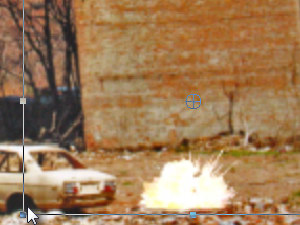 ![]() S tem orodjem kliknite na začetek dela video posnetka, kjer se začne eksplozija in nato kake pol sekunde kasneje še enkrat, da boste izrezali en majhen delček (glej sliko). |