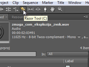 ![]() Izberite orodje Razor Tool (bližnjica je tipka C). |