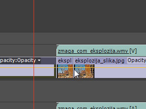![]() V časovnem traku se sedaj premaknite z drsnikom (glej sliko) v desno, da boste čez oba dodana posnetka. |