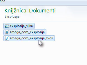 ![]() V oknu z raziskovalcem označite sliko, video posnetek eksplozije in zvočni posnetek. |